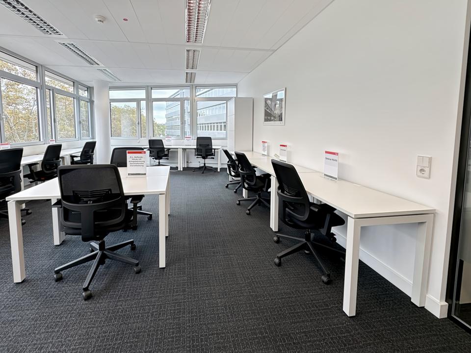 Erhalten Sie Zugang zu einem hellen und inspirierenden Büroraum, der darauf ausgelegt ist, Teams von 5 Personen optimal bei ihrer Arbeit zu unterstützen.