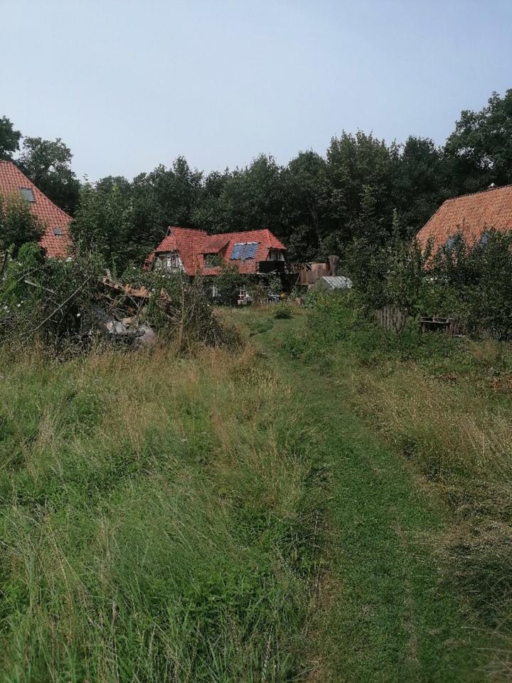 Das Haus steht auf einem Gemeinschaftsgrunstück mit 4 Häusern zwischen Feld und Wald. Es gibt 4 bzw 5 Zimmer. Das 5 ist eine offene Galerie und wurde von uns als Wohnzimmer genutzt, hier gibt es eine Absis die wir als Schlafzimmer genutzt haben. die oberen Zimmer sind Durchgangsräume, ein Zimmer unten erreicht man über die Küche. Es gibt drei Toile ...