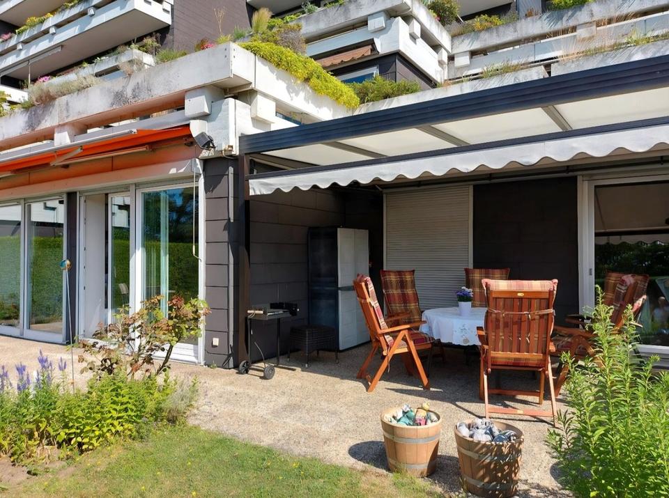 Die Wohnung ist ebenerdig, hat einen Garten und eine Terrasse, die teilweise überdacht ist. Gesamtfläche ca.162qm (ca.131qm Wohnfläche, 2 Nebenräume ca. 31qm) Garten ca.195qm.