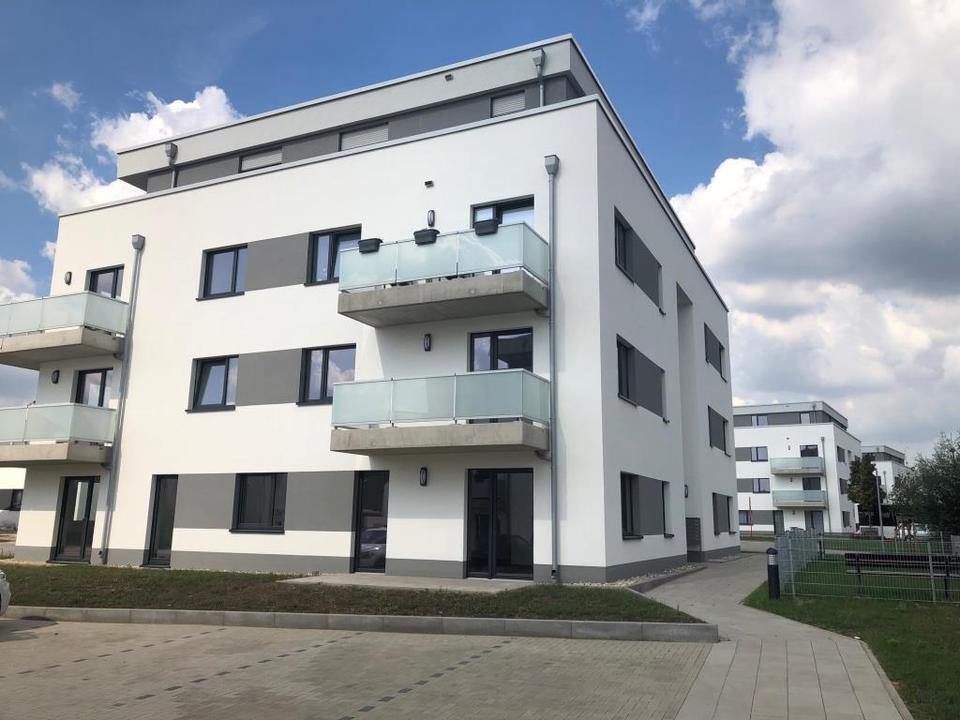 Die Wohnung befindet sich in einem neugebauten Mehrfamilienhaus mit vier Geschossen. Insgesamt wohnen zwölf bis vierzehn Mietparteien in einem Haus und jede Wohnung verfügt über einen eigenen Balkon / Terrasse. Im Grünen Bogen werden Wohnungen mit einer Größe von 48 m² bis 85 m² angeboten.