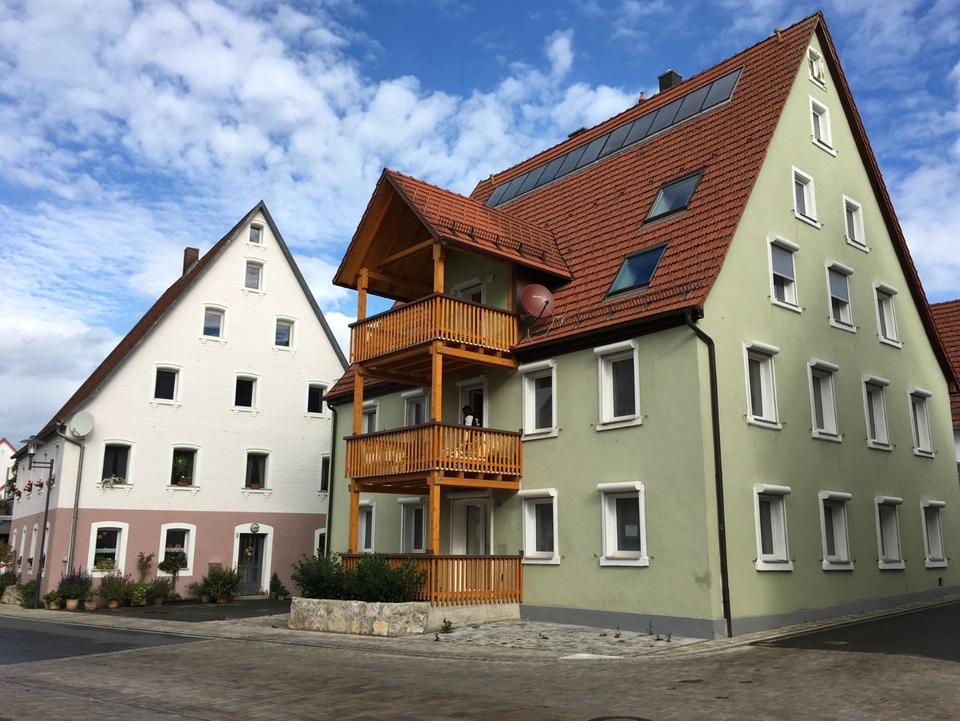 Sonnige Etagenwohnung im 1.OG mit großem überdachten Balkon und historischem Flair in enrgetisch neu sanierten fränkischen Hopfenhaus, 78 kWh/(m².a), ruhige, zentrale Wohnlage mit bester Verkehrsanbindung, S-Bahn & VGN-Bus fussläufig, Gaszentralheizung, inkl.1 Stellplatz, weitere Stellplätze optional, Fahrradcarport, Lagerraum ebenerdig, ...